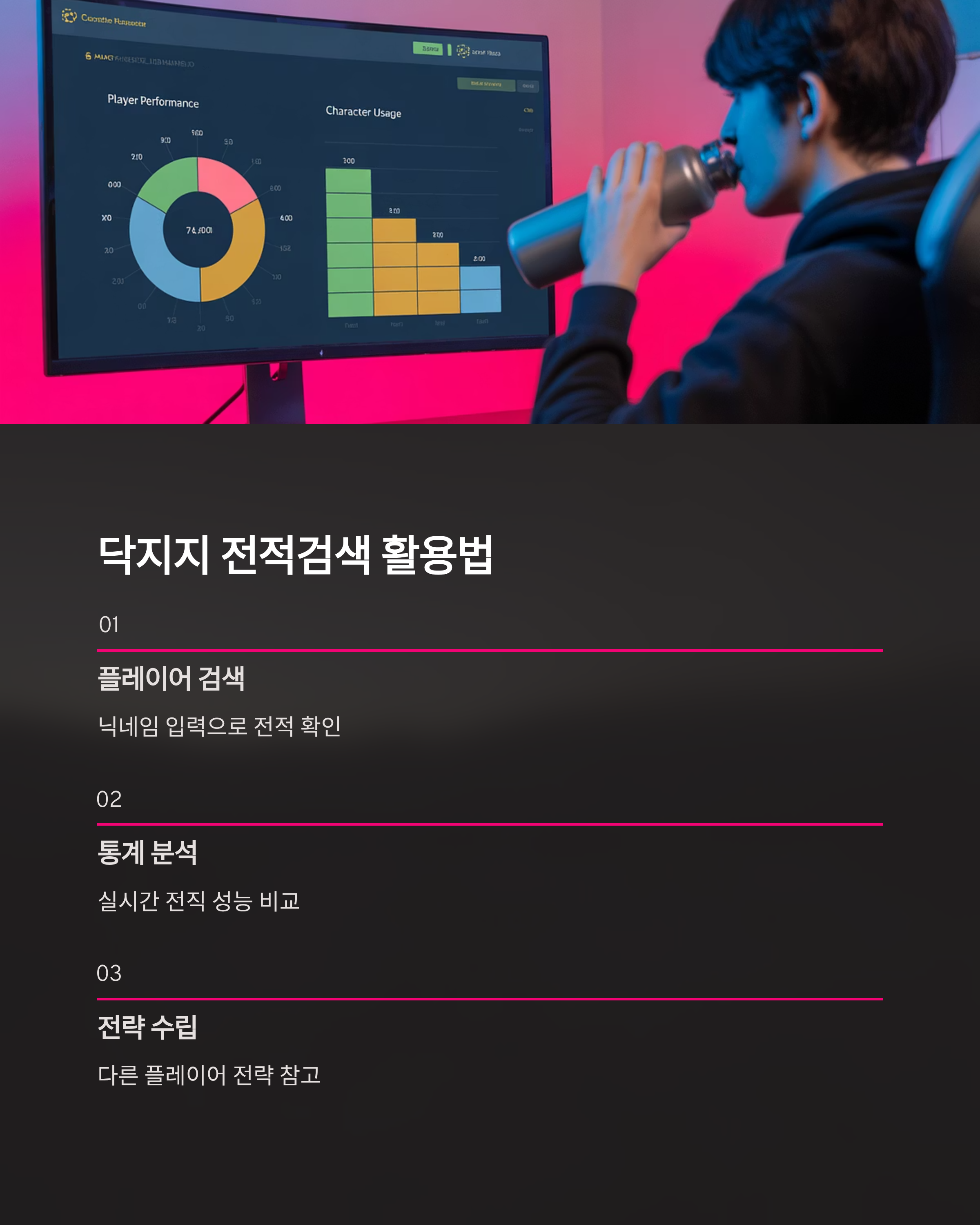- 전략 수립 : 다른 플레이어의 전적을 분석하여, 그들의 전략을 참고하여 자신의 플레이에 적용할 수 있습니다.