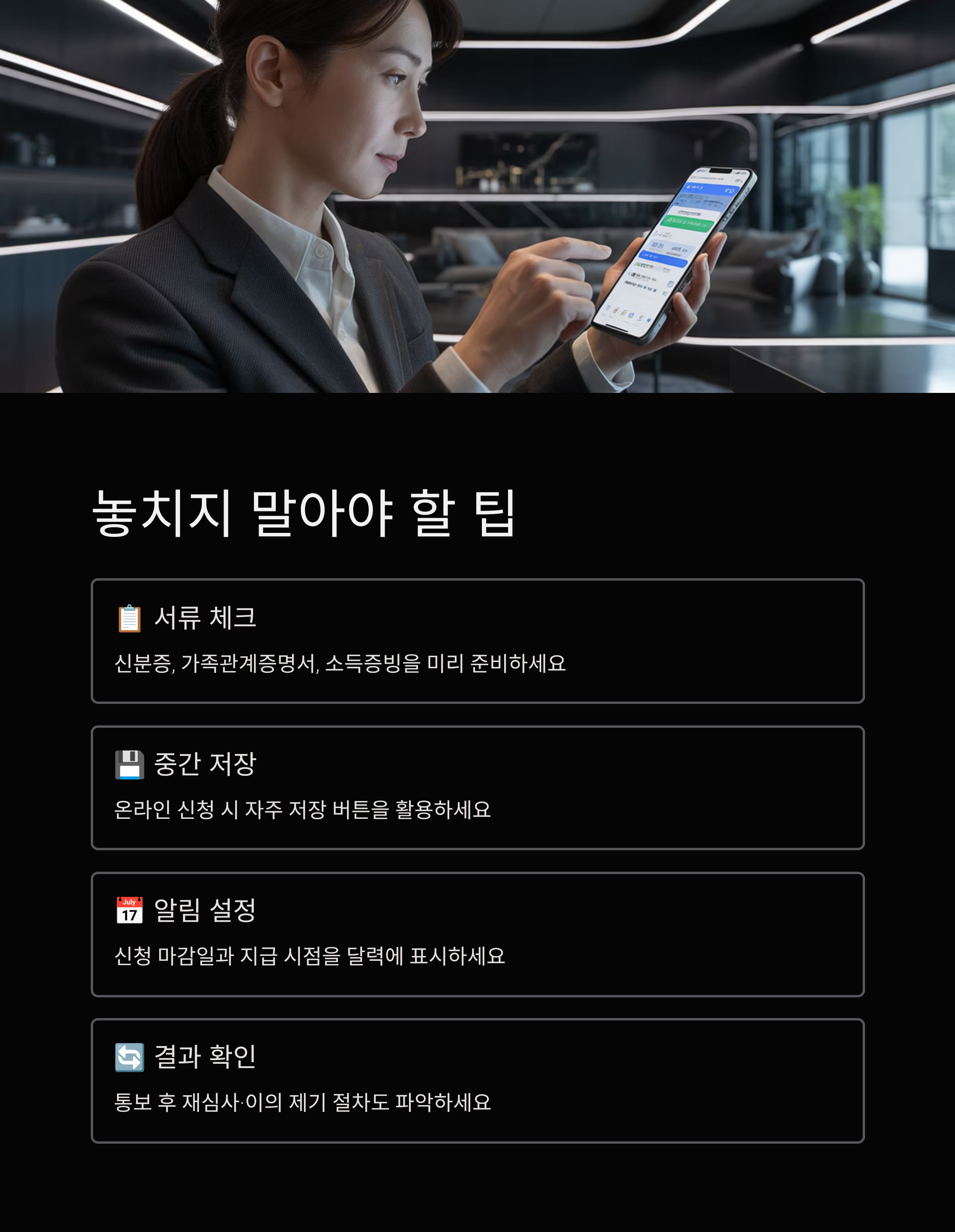 - 신청 후 결과 통보를 받은 뒤, 필요한 경우 재심사나 이의 제기 절차도 확인합니다.