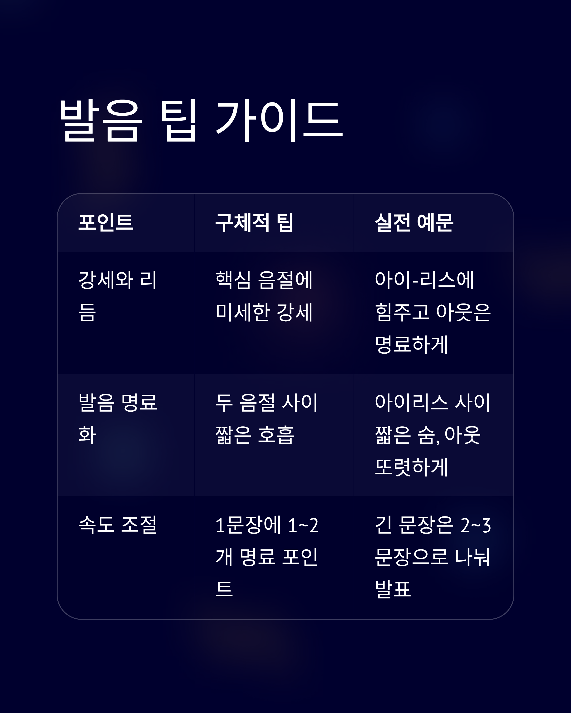 핵심 아이디어는 어렵게 들릴 수 있는 발음을 명확하고 자연스럽게 만드는 작은 습관들입니다.