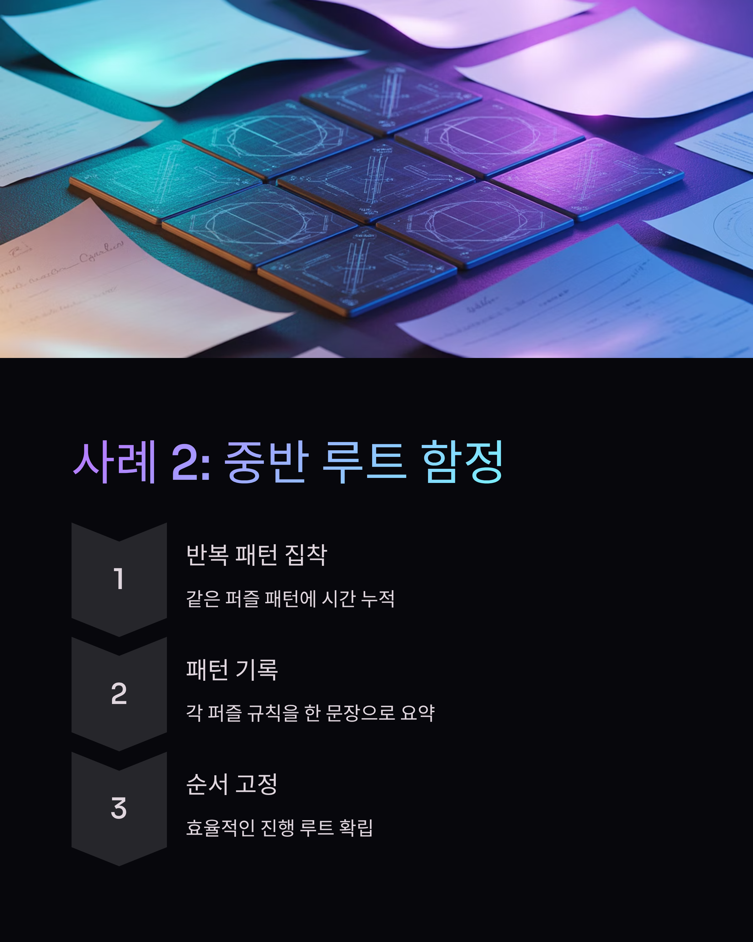 - 사례 2: 중반 루트에서 같은 패턴의 퍼즐을 반복하다 시간 누적. 해결법은 패턴을 기록하고, 각 퍼즐의 규칙을 한 문장으로 요약해두고 순서를 고정하는 것.
