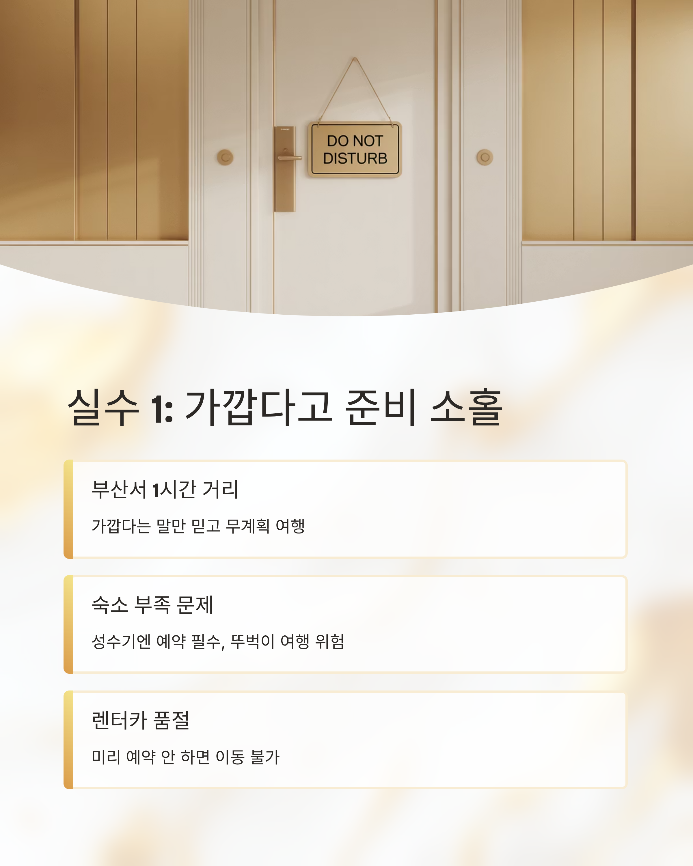 "부산에서 1시간 거리"라는 말에 혹해서 대마도를 너무 쉽게 생각했던 게 첫 번째 실수였습니다. 마치 국내 여행처럼 숙소나 교통편 예약 없이 떠났다가 낭패를 봤습니다. 특히, 대마도는 숙소 수가 제한적이고, 렌터카 예약도 필수입니다. 성수기에는 미리 예약하지 않으면 원하는 숙소를 구하기 어렵고, 뚜벅이 여행을 해야 할 수도 있습니다.