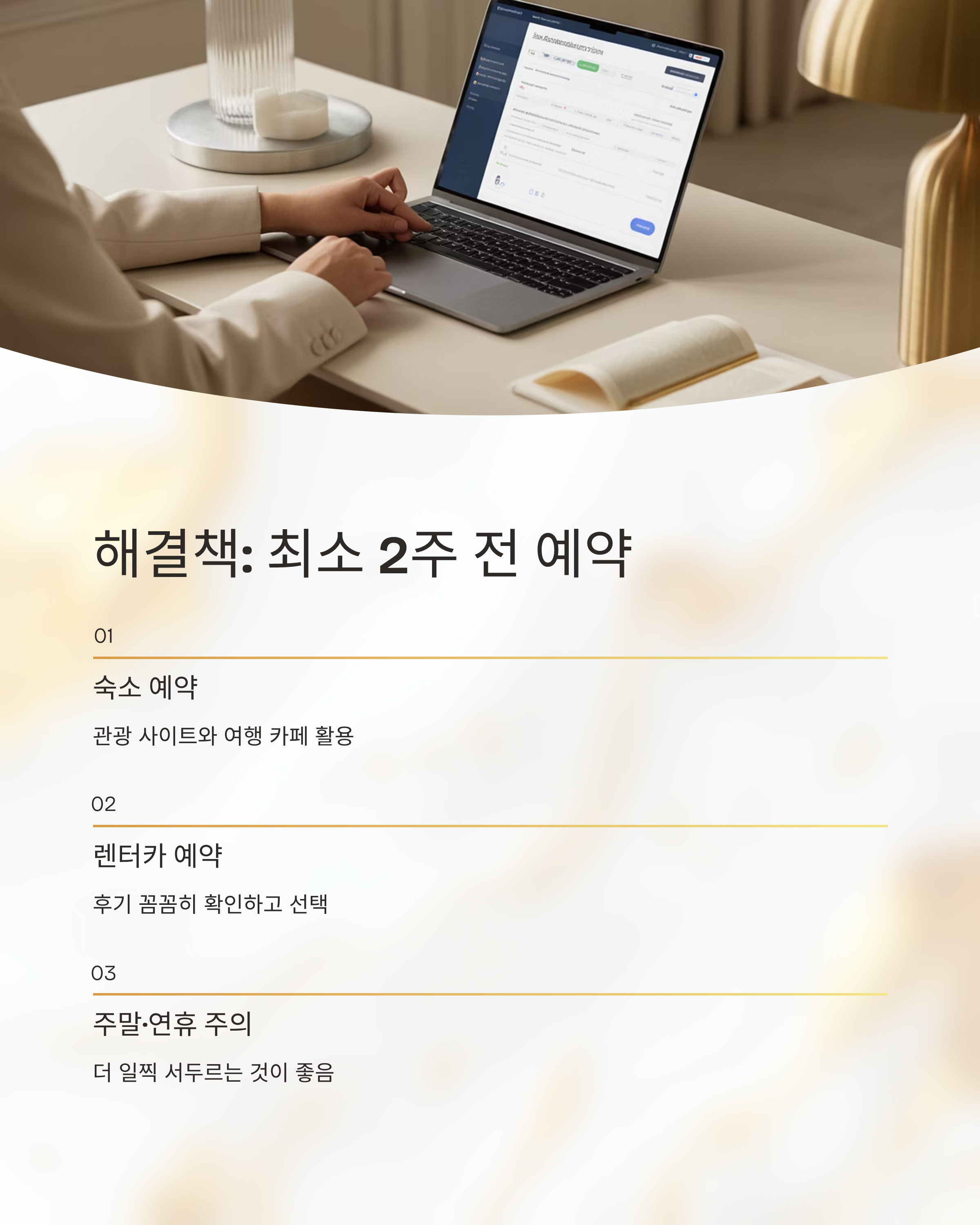 해결책: 최소 2주 전, 늦어도 1주 전에는 숙소와 렌터카를 예약하세요. 특히 주말이나 연휴에는 서두르는 것이 좋습니다. 대마도 관광 정보 사이트나 여행 카페를 통해 숙소와 렌터카 정보를 얻고, 후기를 꼼꼼히 확인하는 것도 중요합니다.